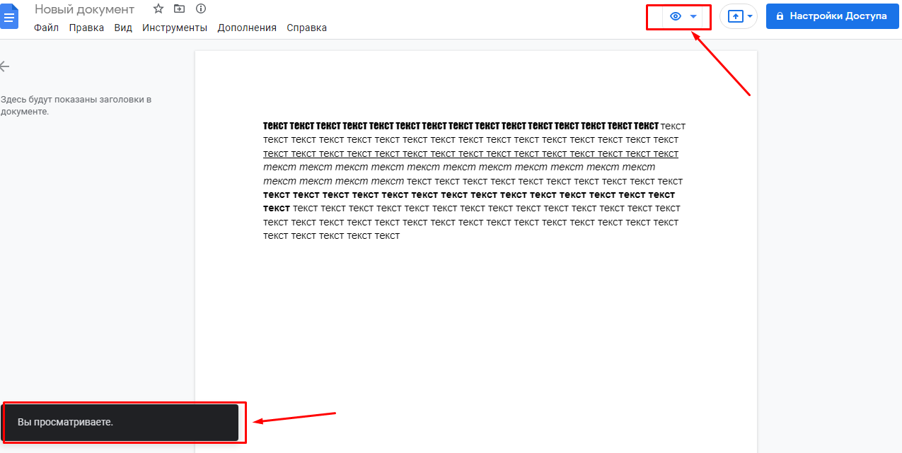 - Кликните на этот значок, вам откроются доступные режимы пользователя (там будут «Редактировать», «Советовать», «Просматривать»);