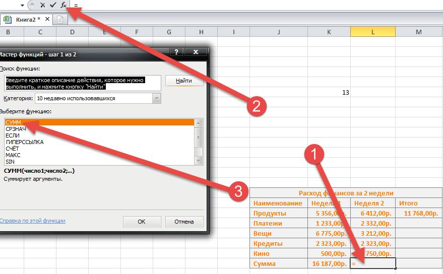 Все логично и невероятно удобно. Выбор поле для подсчета. Далее значок Fx (Изображение № 4, Пункт 2), определение подходящей для совершения арифметического действия формулы. (Все подписано и совершенно наглядно). После выбора СУММ выделение диапазона значений. Подтверждение действия кнопкой ВВОД. Лучший способ разобраться во всех функциях и набить руку – попрактиковаться. Любые табличные данные прекрасно подойдут для сложения, вычитания и выведения среднего значения.