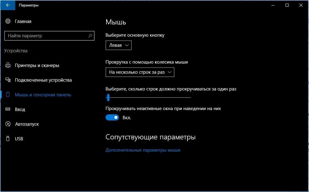 Включаем прокрутку неактивных окон. В Windows 10 есть подобная опция, которую можем найти в списке «Параметры» (Win+I). Переходим в блок «Устройства», переходим в меню «Мышь» и активируем опцию прокрутки неактивных окон. Еще бывает, что данная настройка лагает, стоит несколько раз ее включить и выключить, может помочь.