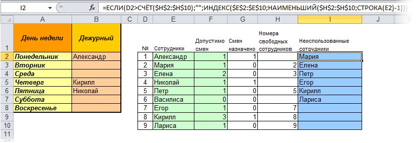Шаг 4. Создаем именованный диапазон свободных сотрудников
