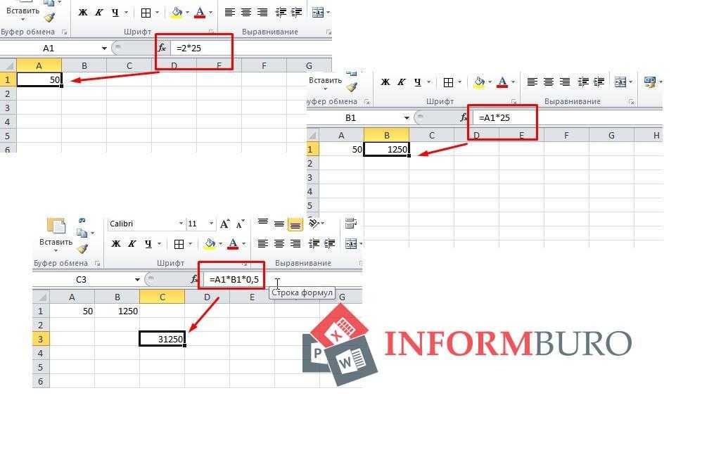Если ввести эту формулу в ячейке C1, в ней будет показан результат (4806). Та же формула, но со ссылками на ячейки (например, A1 и B1 в формуле =A1*B1