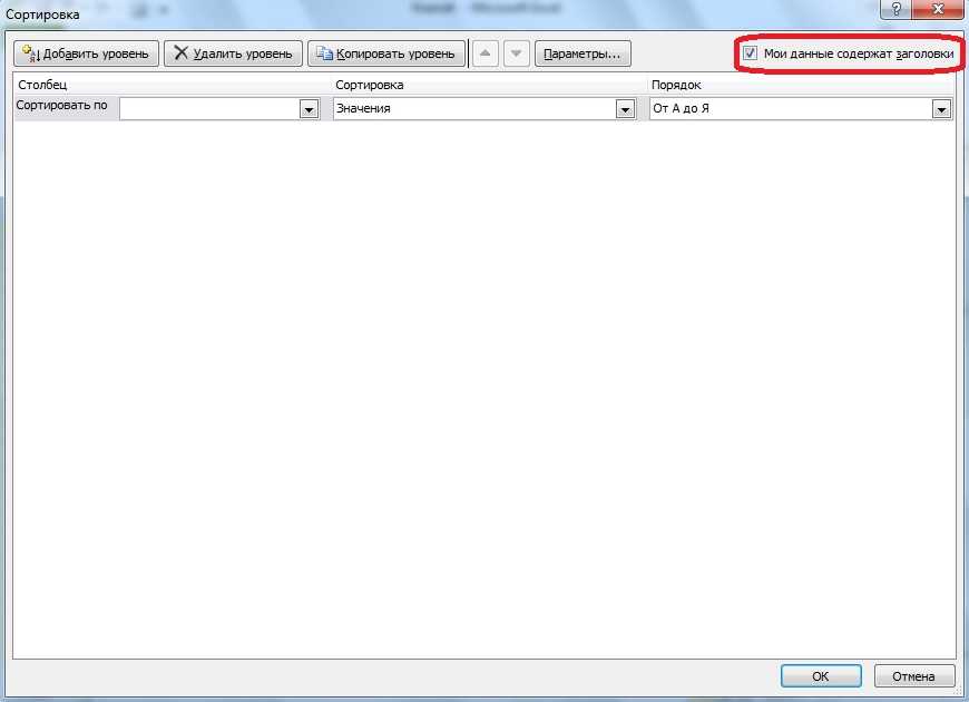 Важно сразу отметить один факт. Если в таблице у столбцов присутствуют названия, то нужно установить галочку возле пункта «Мои данные содержат заголовки»