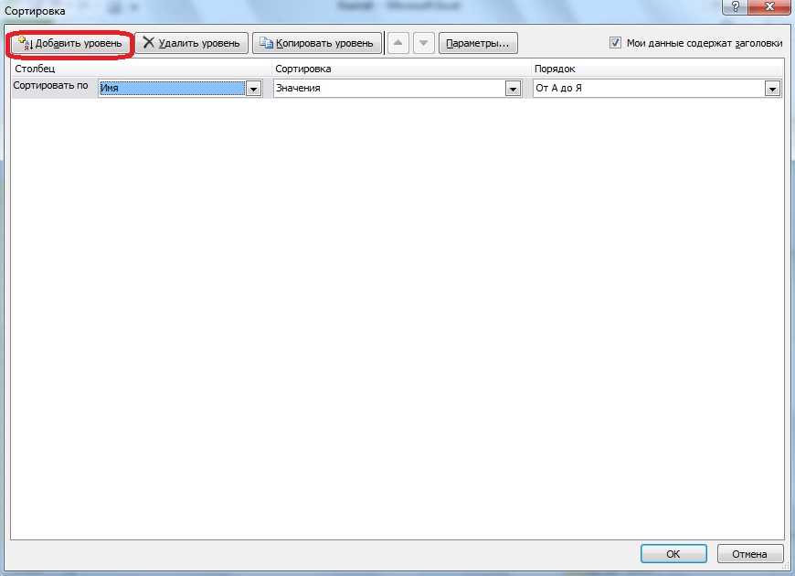 Сортировка по одному столбцу реализована. В прочем, вы уже делали так, выше описывался алгоритм. Теперь о том, как выполнить распределение данных по другому параметру. Первым делом вы должны кликнуть на «Добавить уровень» в верхнем левом углу.