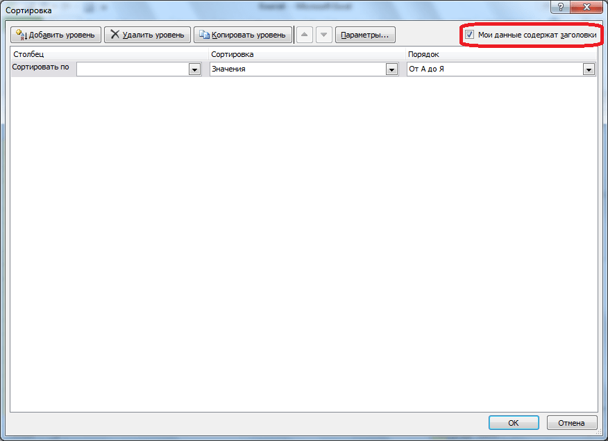Если в вашей таблице есть заголовки, то обратите внимание, чтобы в данном окне обязательно стояла галочка около параметра «Мои данные содержат заголовки»