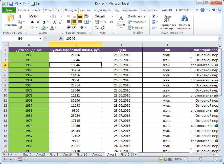 Каждая строка с данными в Microsoft Excel действительно похоже на запись, которая должна быть такой же по всей строке