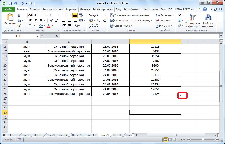 - Удерживая клавишу SHIFT, щёлкните номер нижней строки, чтобы выделить все строки в диапазоне.