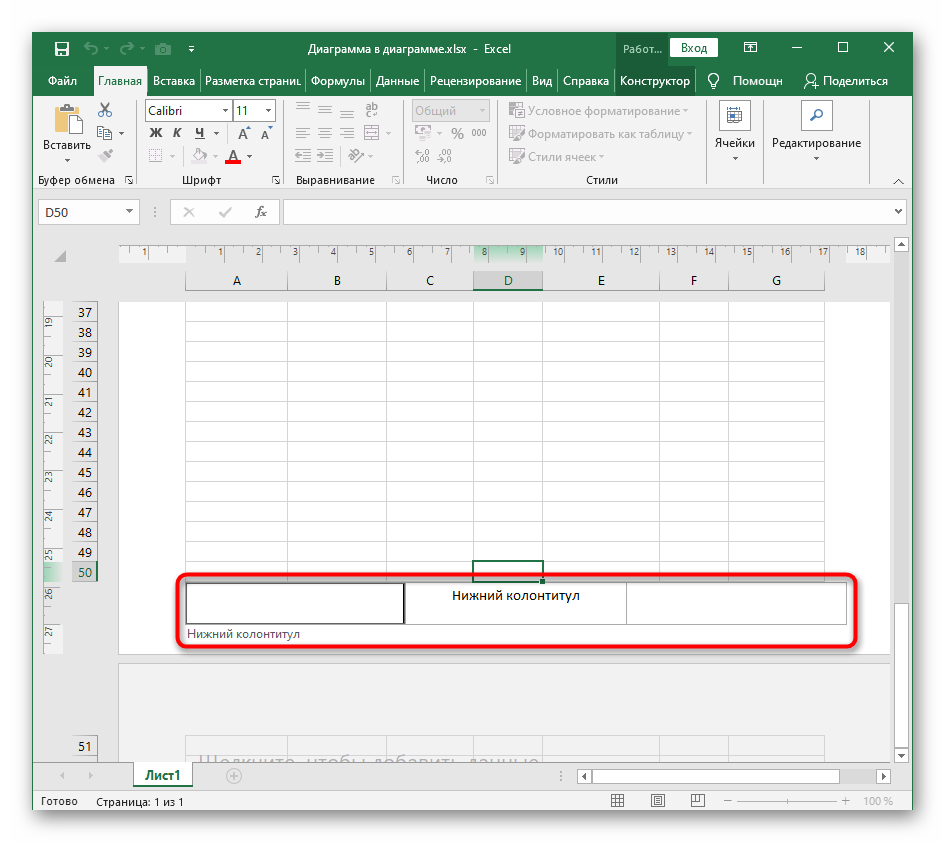 Прокрутите до конца листа, чтобы добавить нижний колонтитул.