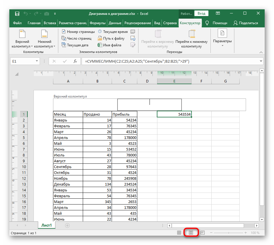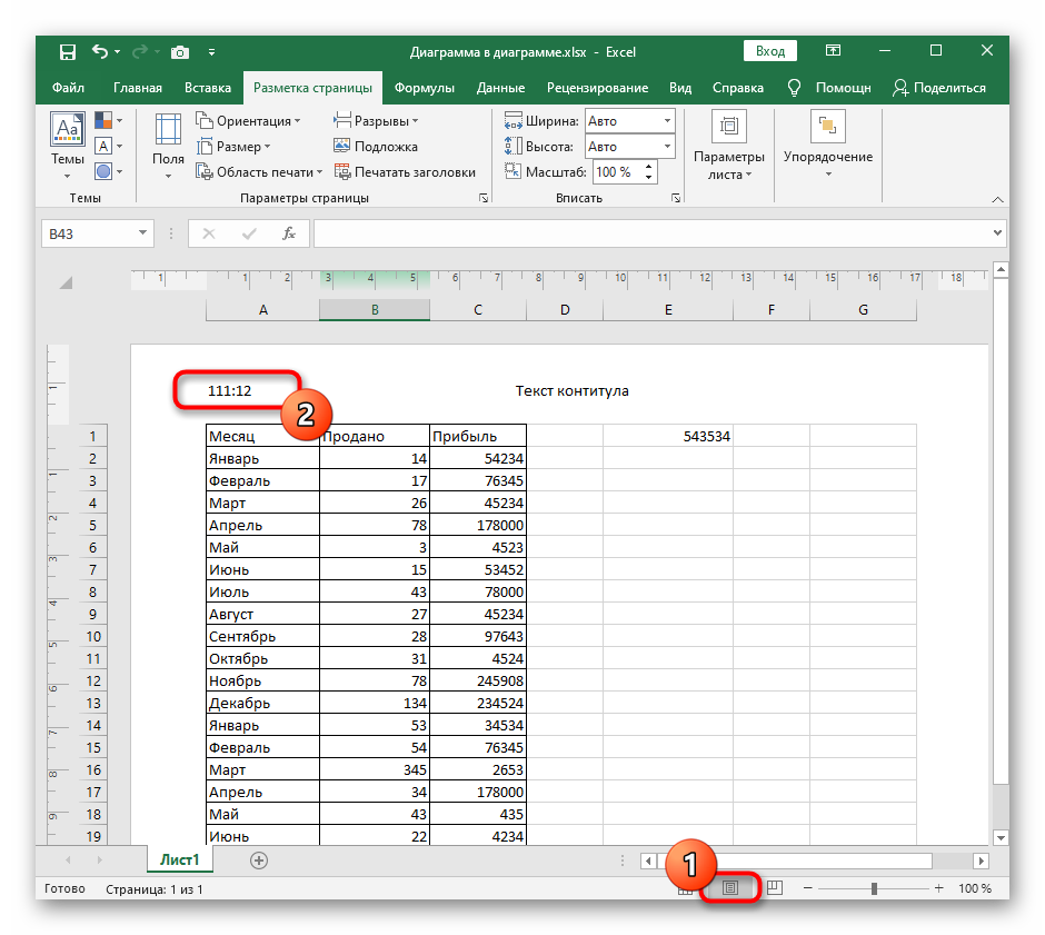 Перейдите к представлению «Разметка страницы», чтобы посмотреть на результат созданного колонтитула.