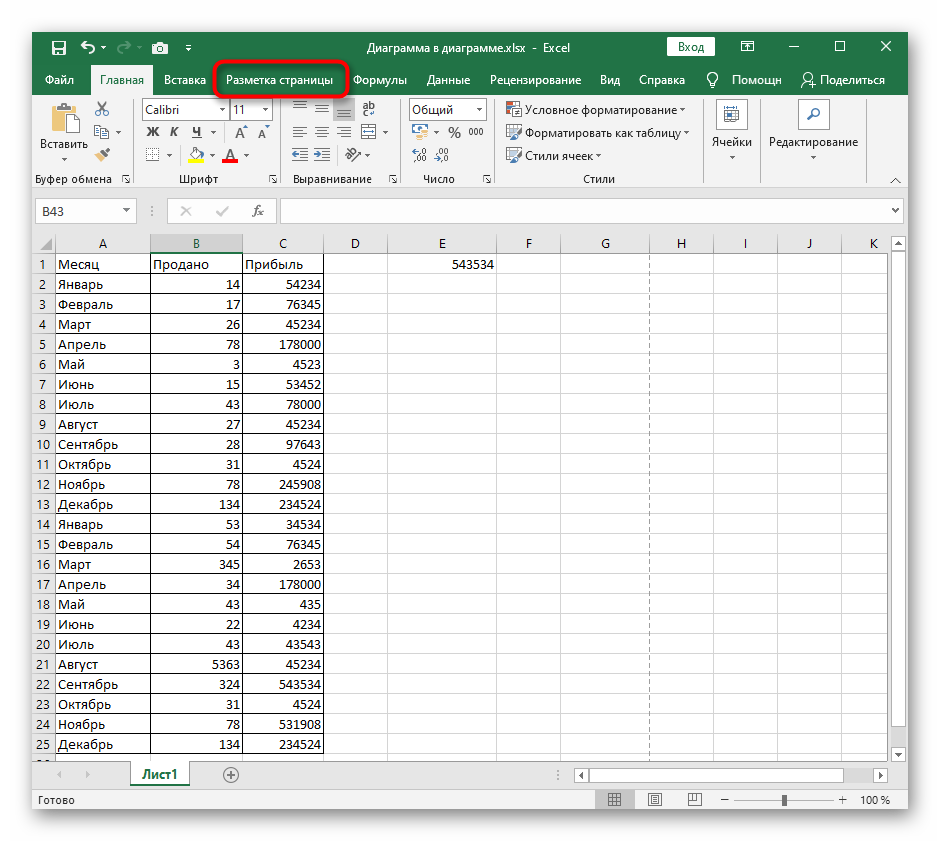 - Находясь в обычном представлении, переключитесь на вкладку «Разметка страницы».