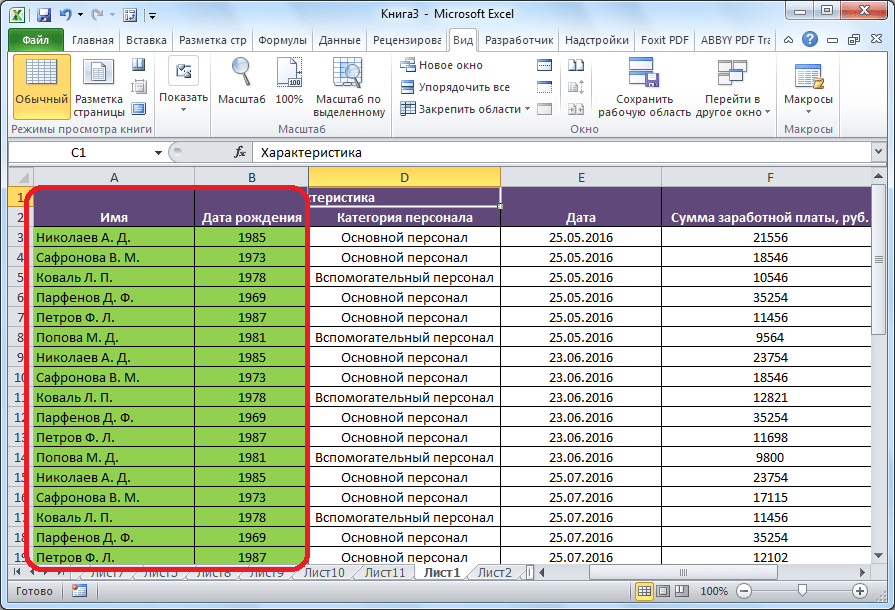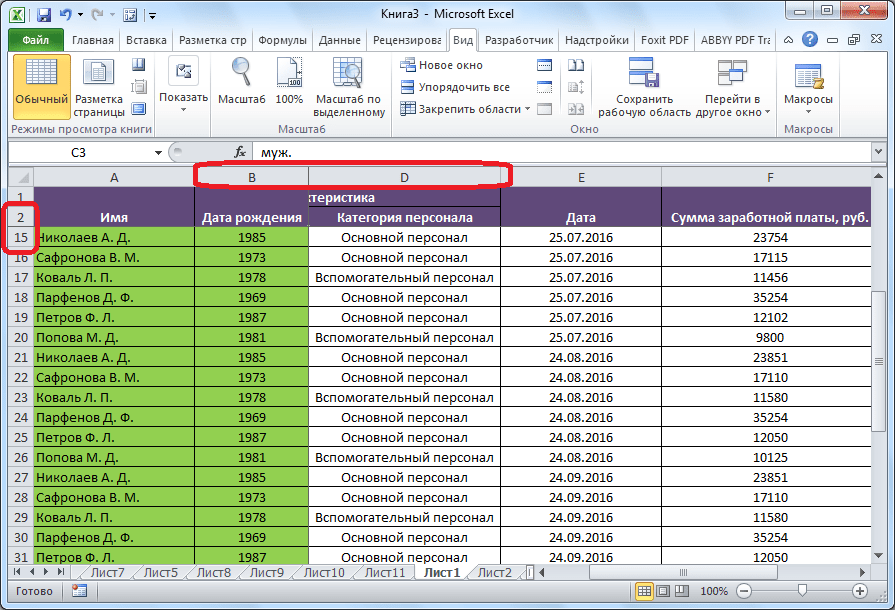 Чтобы закрепить несколько столбцов, выделите столбец, расположенный справа от последнего столбца из тех, которые нужно закрепить, перейдите на вкладку Вид