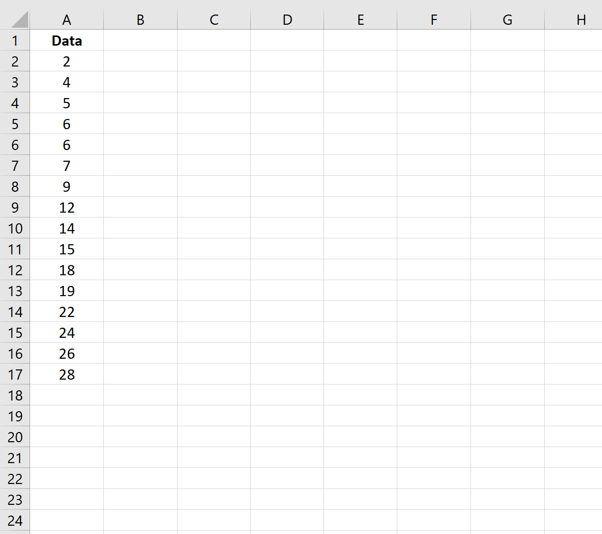 Используя функции ПРОЦЕНТИЛЬ или ПРОЦЕНТИЛЬ.ВКЛ , мы вычисляем 20 -й процентиль равным 6.