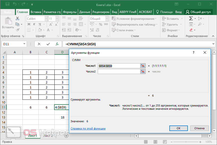 Функция СУММ суммирует все числа, которые вы указали в качестве аргументов. Каждый аргумент может быть диапазон, ссылка на ячейку, массив, константа или формулалибо результатом выполнения другой функции. Например, СУММ(A1:A5) суммирует все числа в диапазоне ячеек A1–A5. Другим примером является сумм(A1, A3, A5), которая суммирует числа, содержащиеся в ячейках A1, A3 и A5 (аргументы — A1, A3 и A5).