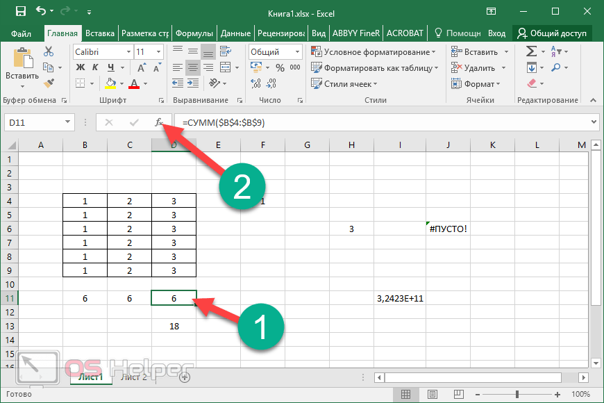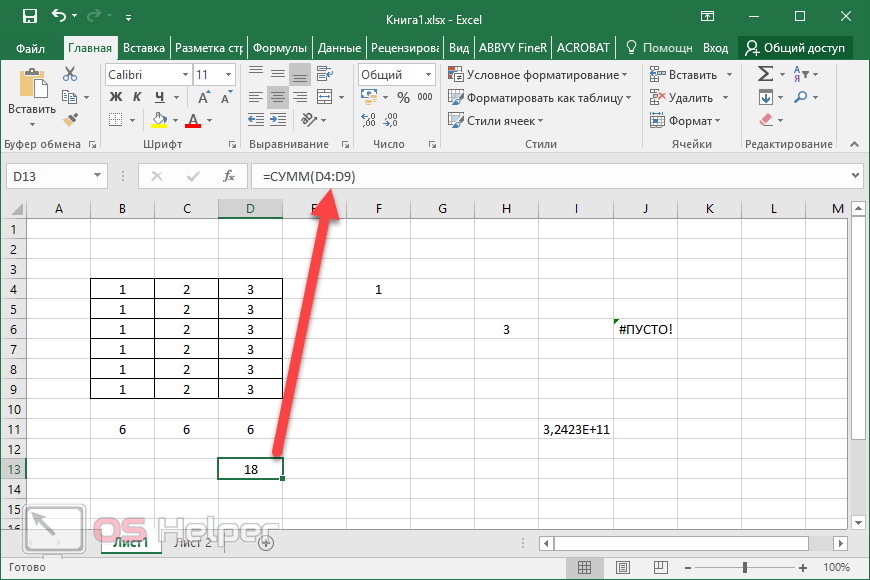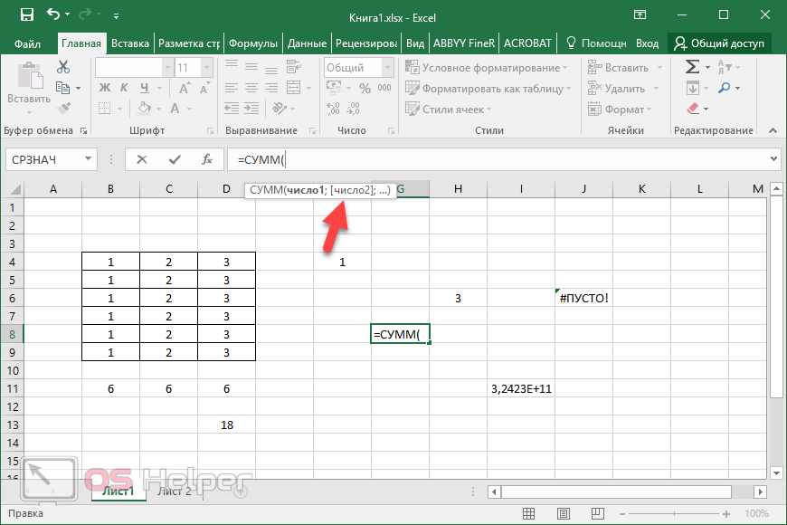 - таблице (например, складываете ячейку Лист11!Н7, расположенную Теперь начинаем вводить