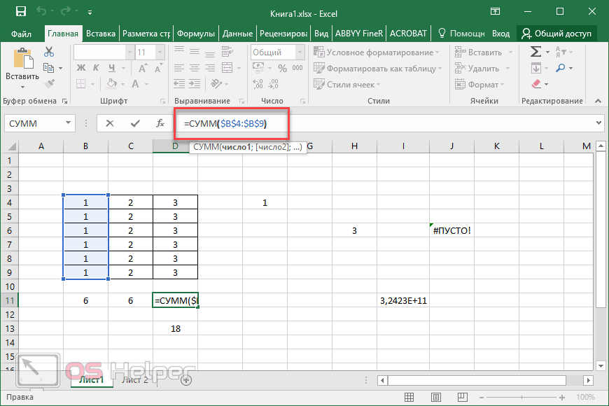 2. Записываете формулу с применением абсолютной ссылки, которую можно сделать при помощи значка доллара или клавиши F4.