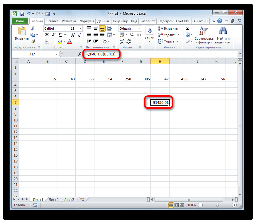 Расчет дисперсии в Microsoft Excel