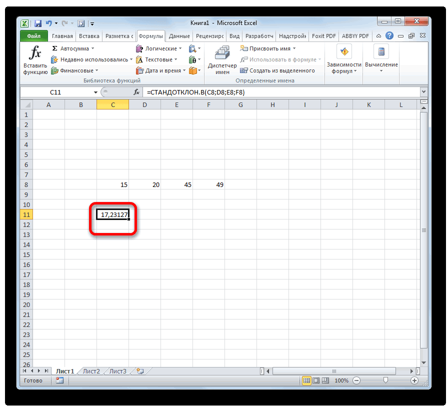 Среднее квадратическое отклонение: формула в Excel