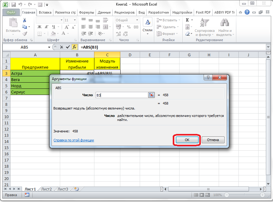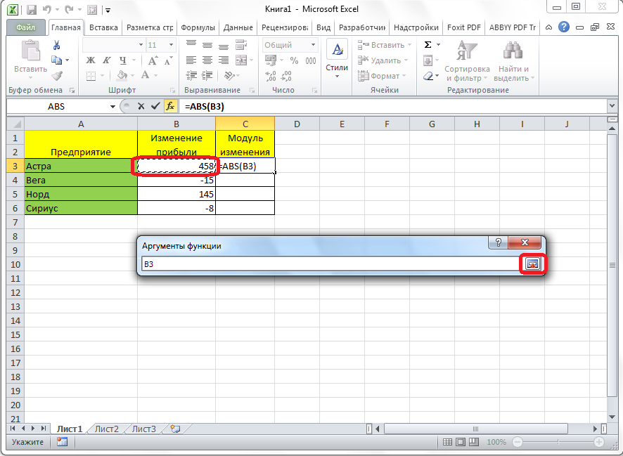 Рассчитать модуль в Excel, функция ABS и ее применение