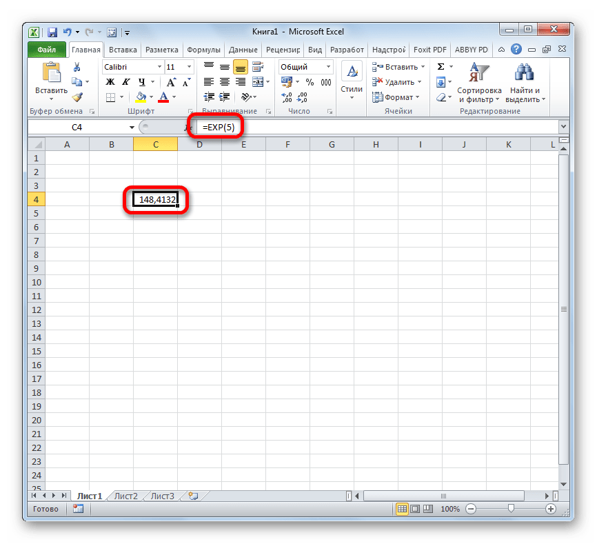 Вычисление экспоненты в Эксель