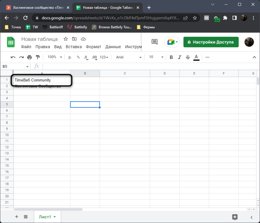 В первую очередь укажите ячейку, в которой находится сам текст. Если у вас он только сохранен в буфере обмена, его можно написать в формате «Пример_текста».