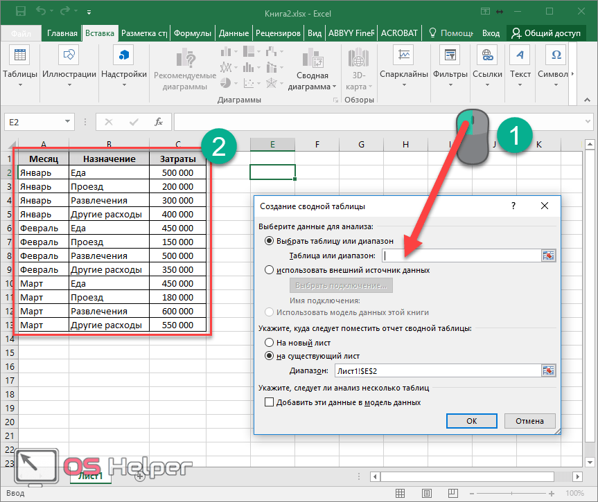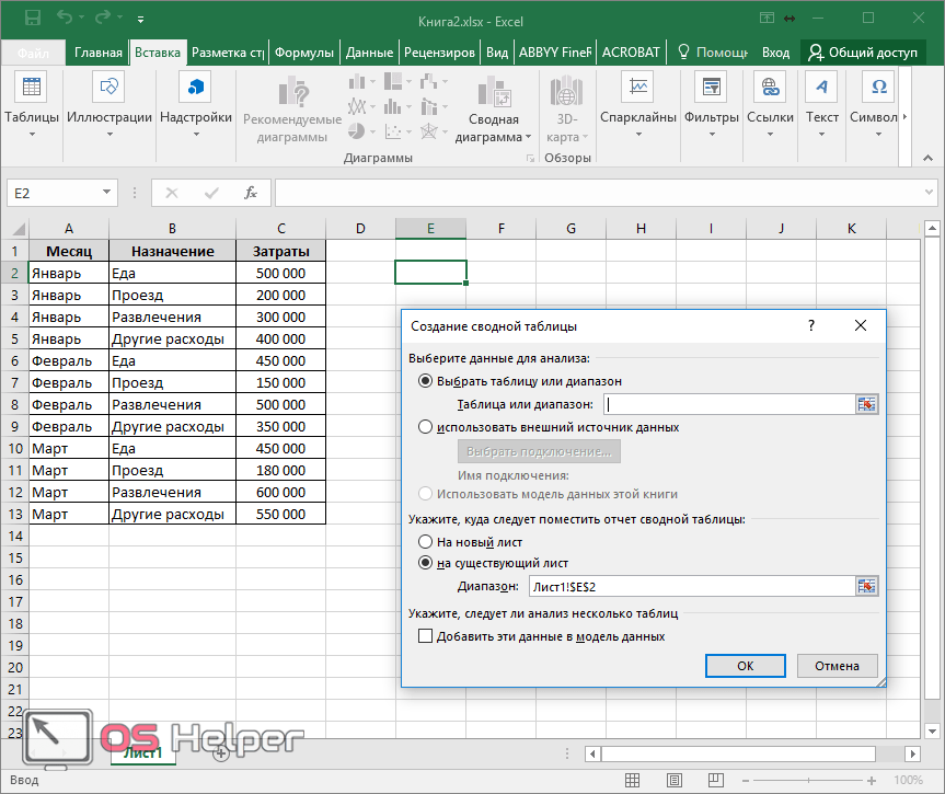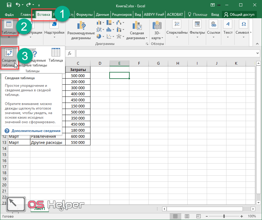 Данный тип представления информации служит для ее обобщения и последующего анализа. Для создания такого элемента нужно сделать следующие шаги.