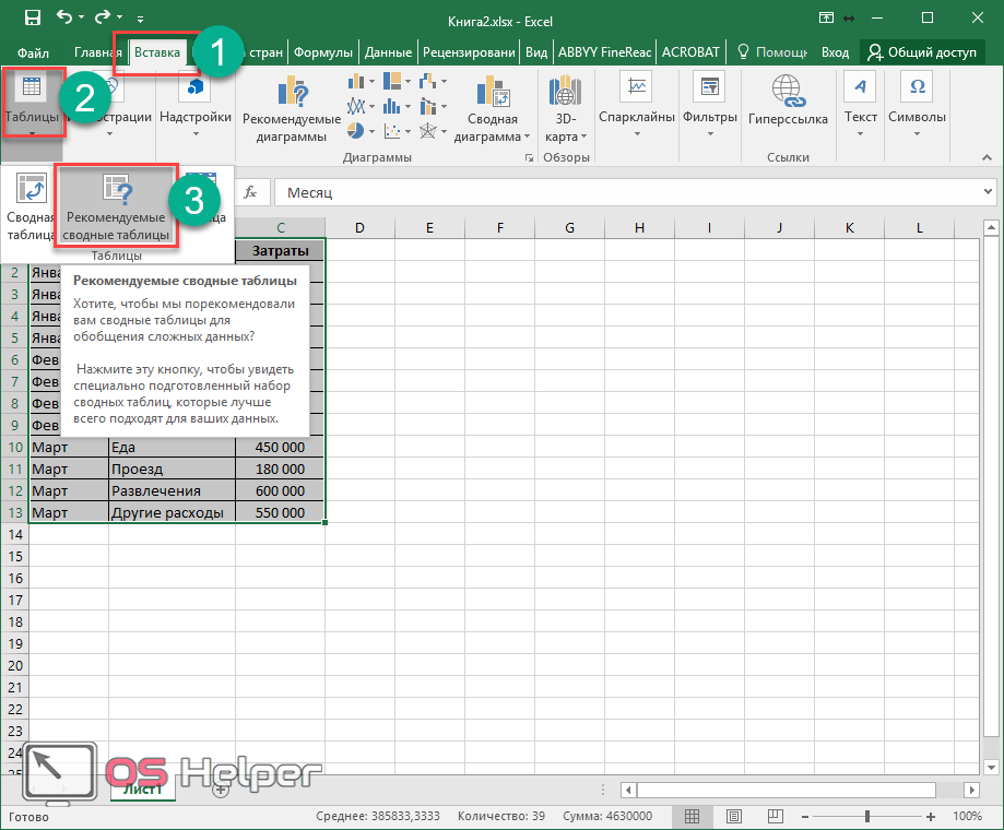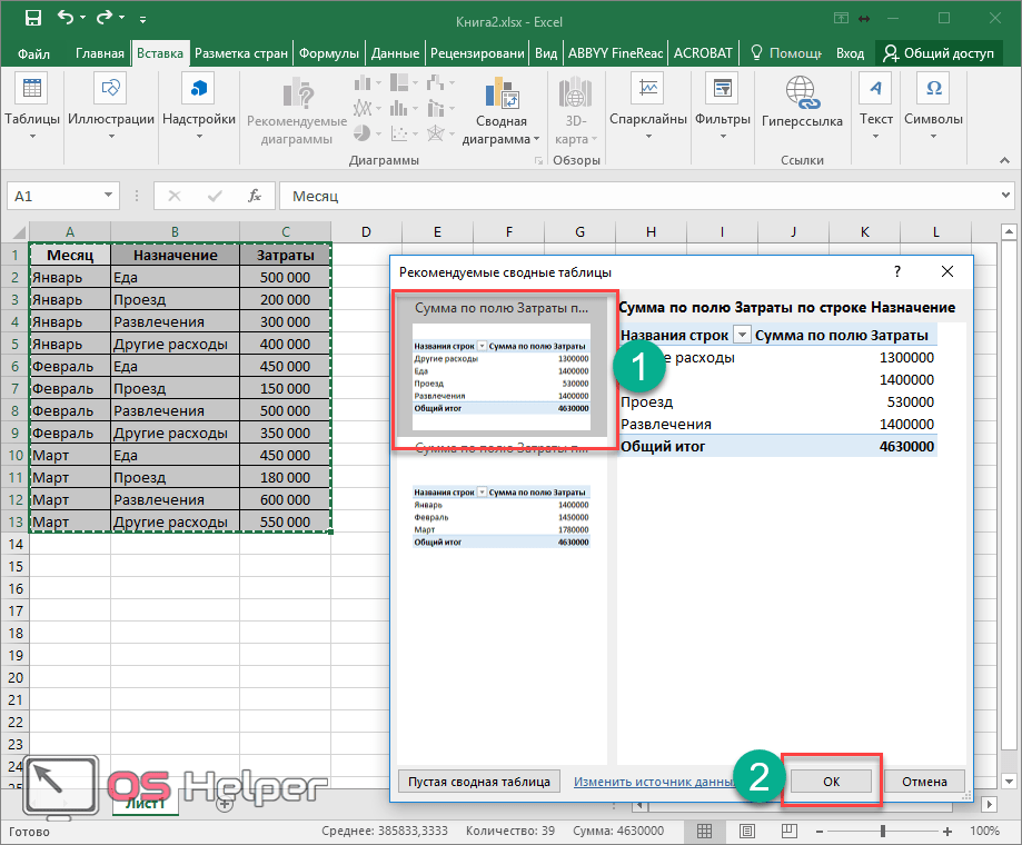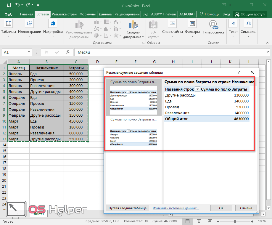 Иногда не получается правильно подобрать поля для столбцов и строк. И в итоге ничего путного не выходит. Для таких случаев разработчики Microsoft подготовили свои варианты анализа данных.