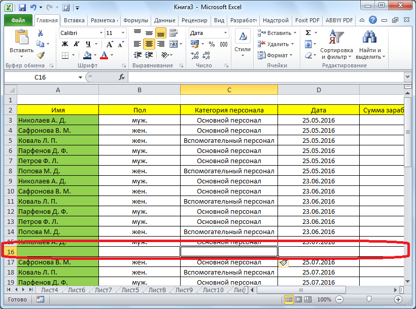 Как видим, новая строка в программе Microsoft Excel успешно добавлена.