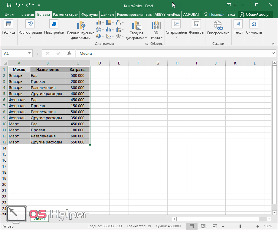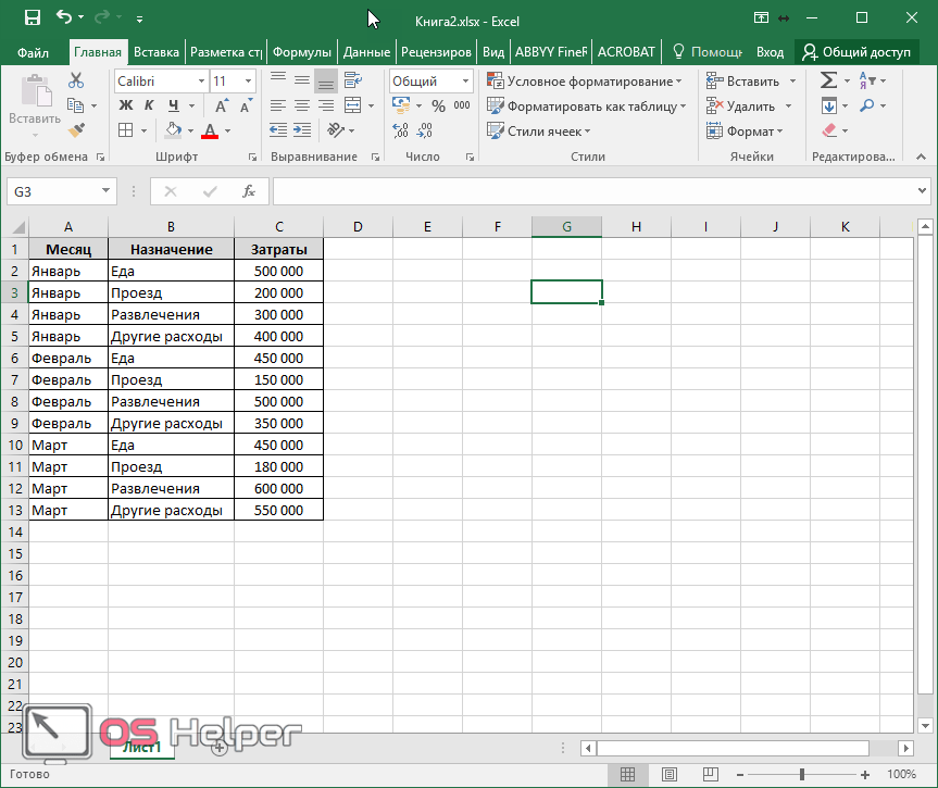 - В случае примера, мы получили сумму общих затрат, без учета месяцев.
