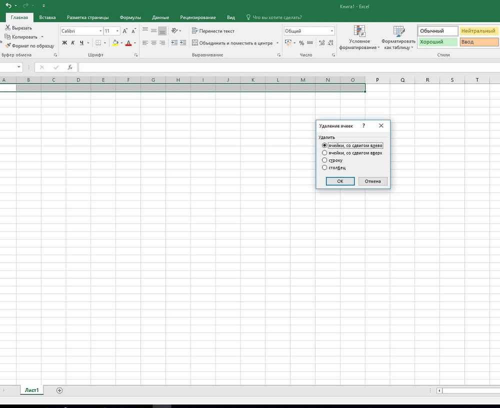 - В меню «Правка» выделите команду «Удалить». Для удаления форматирования остальных ячеек, в которые Эксель не добавляет строки и не дает копировать, сделайте указанные выше шаги.