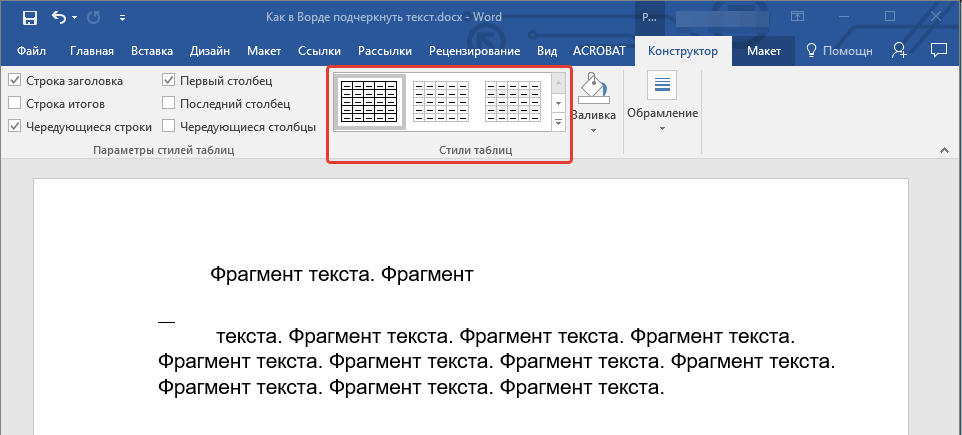 Выберите стиль “Подчеркнуть”, чтобы выбрать другой стиль.
