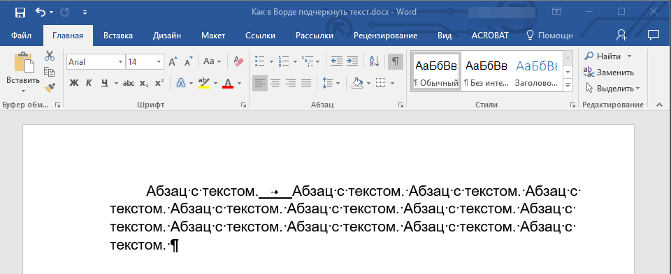 Подчеркивание текста или пробелов