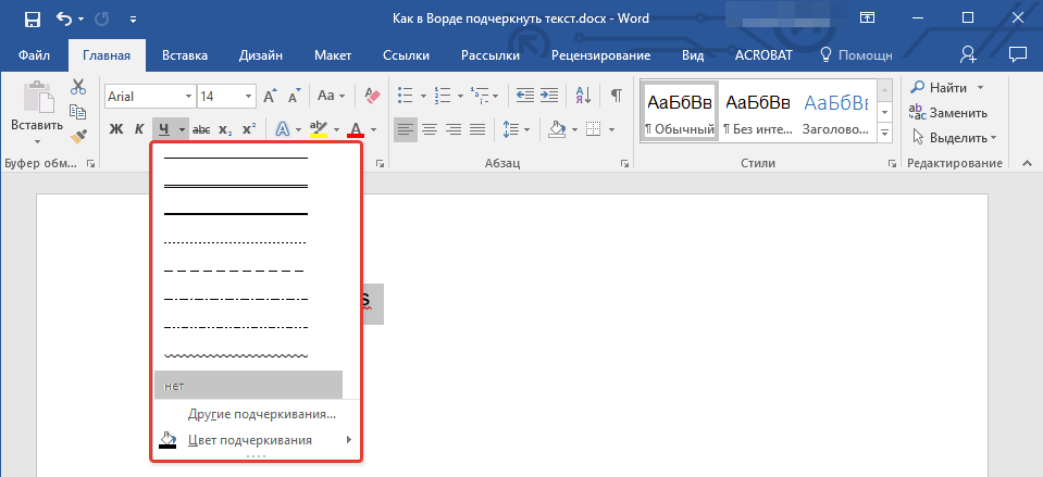 Чтобы применить другой стиль подчеркивания, перейдите на вкладку Главная и нажмите кнопку вызова диалогового окна » Шрифт »