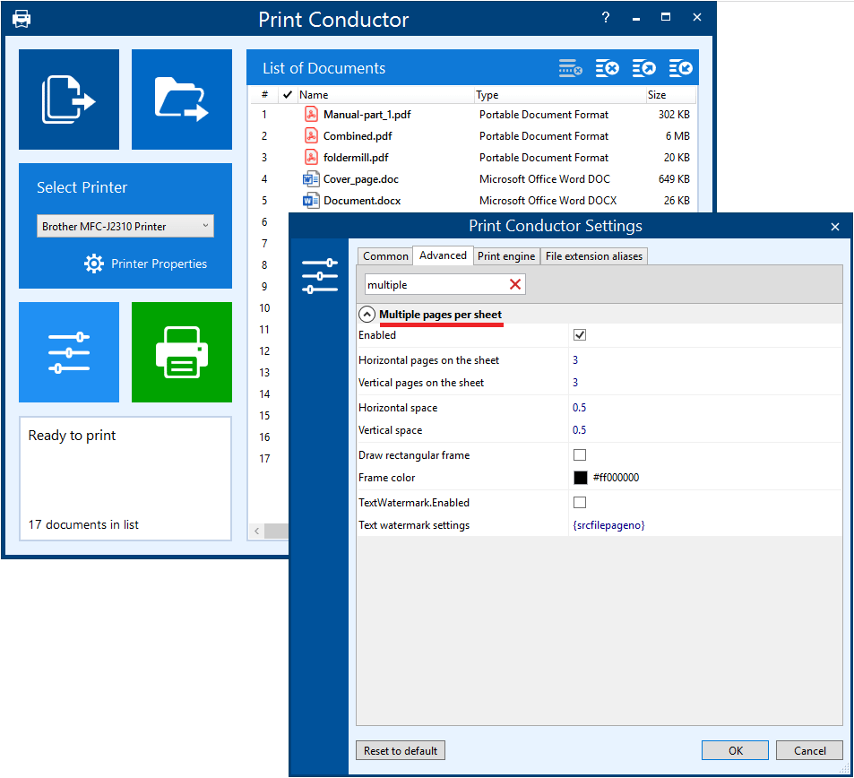 Печать нескольких страниц на одном листе бумаги с помощью Print Conductor