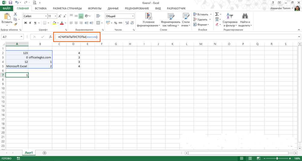 - Выделите ячейку и введите в неё или в строку формул следующее выражение: