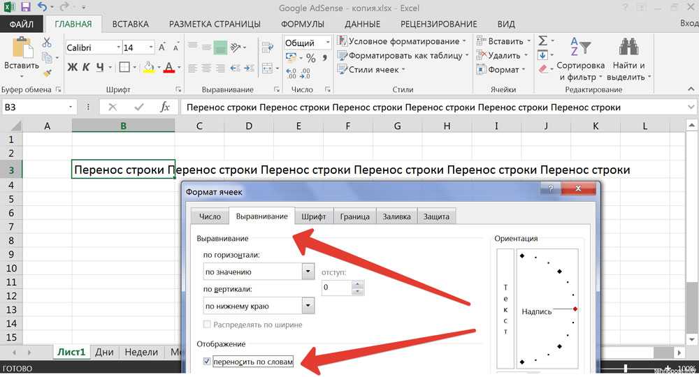 Если перед пользователем не ставится задачи перенести на новую строку строго определенные слова, а нужно только уместить их в пределах одной ячейки, не выходя за её границы, то можно воспользоваться инструментом форматирования.