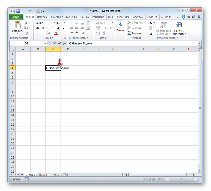 - Нажать ЛКМ один раз на ячейку, в которую вы вводили текст. Не выделять ее и не входить в режим редактирования!