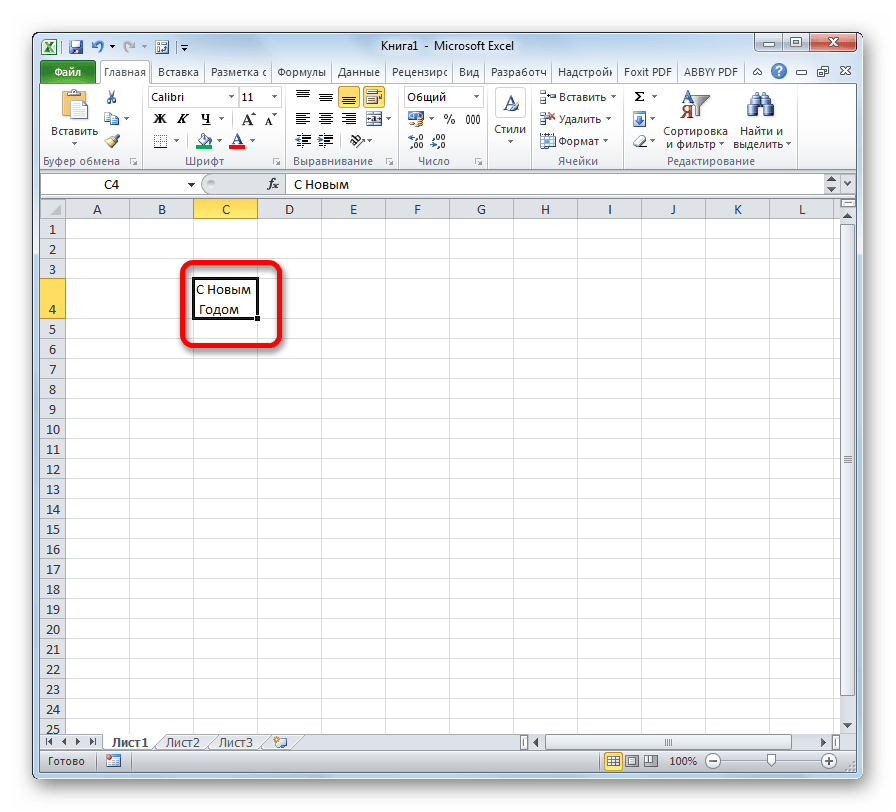 Так как никаких дополнительных действий с формулой мы не делали, то мы видим, что здесь текст на другую строку не переносится.