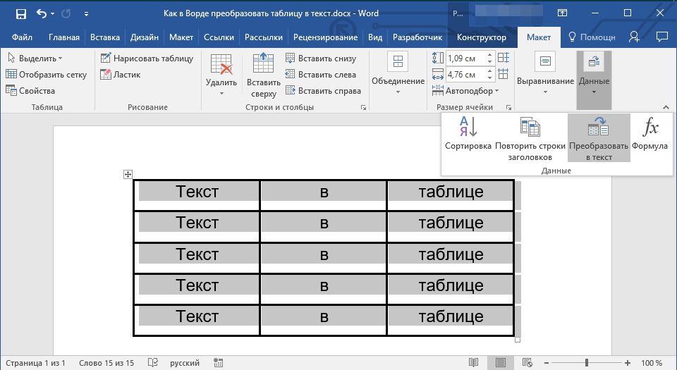 Как преобразовать таблицу в текст в Word – Преобразовать в таблицу