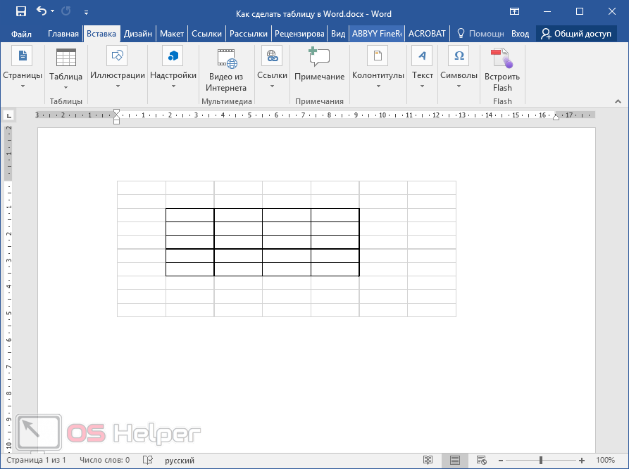На вкладке “Вставка” нажмите кнопку “Таблица”.