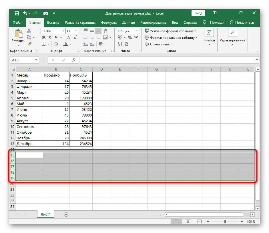Хотя строки и не отображаются в таблице, их можно заметить на левой панели, где показаны цифры, перечисляющие эти самые строки. Скрытый диапазон имеет небольшой прямоугольник, по которому и следует дважды кликнуть, чтобы отобразить все строки, находящиеся в нем.