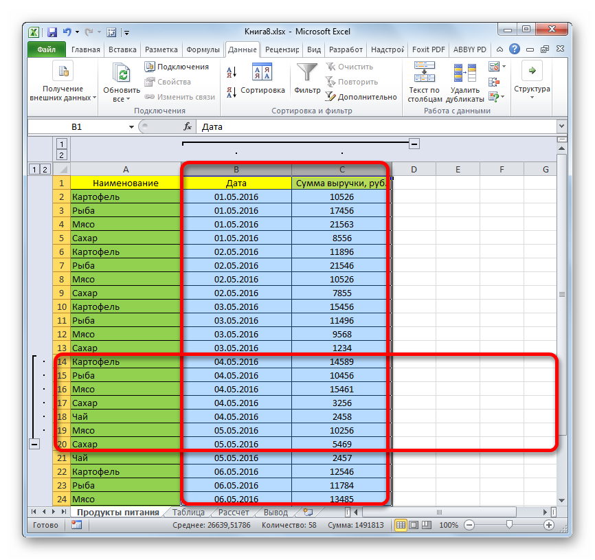 Строчки и столбцы можно также упрятать, используя группировку, когда они собираются в отдельные группы, а потом скрываются. Поглядим, как их показать на дисплее поновой.