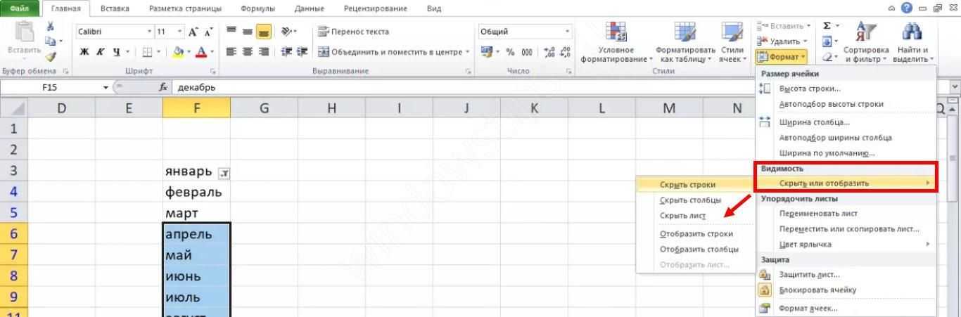 Как скрыть строки или ячейки в Excel